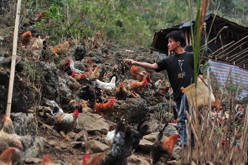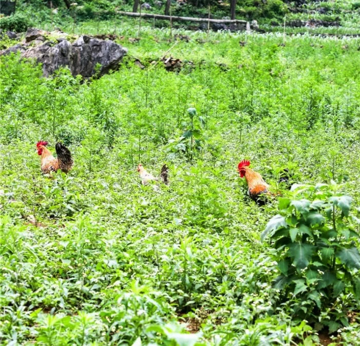 养在千山万弄里的七百弄鸡,是大化山区群众自繁自养的一个地方家禽品种。七百弄鸡具有养殖历史悠久、抗病力强等特点,特别适应在石漠化地区生存繁衍,农户将其放养于山间林地,饲以玉米、谷物,因此鸡肉皮下脂肪少,有弹性,蛋白质含量高,且有铁、锌等有益人体的微量元素,富含亚油酸、亚麻酸、肌苷酸等风味物质。